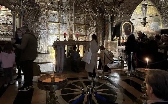 There were pilgrims there during my visit today, but many people were tourists. I know that, sadly, tour guides who weren’t Christian had little interest in helping their groups to pray. And given this is a once-in-a-lifetime trip for most people, it is understandable that they want to get the most out of it. Rarely does a tourist’s journey come from a place of ill will.